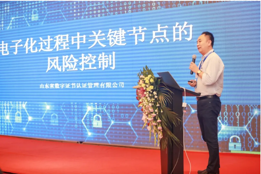 9月10日下午,山東CA曹誠(chéng)副總經(jīng)理發(fā)表題為“電子化過(guò)程中關(guān)鍵節(jié)點(diǎn)的風(fēng)險(xiǎn)控制”的主旨演講。從電子招投標(biāo)全程電子化、應(yīng)用移動(dòng)化、系統(tǒng)合規(guī)化三個(gè)方面與各位來(lái)賓進(jìn)行了探討和分享,在深入分析電子招投標(biāo)系統(tǒng)在發(fā)展過(guò)程中可能存在的問(wèn)題和隱患基礎(chǔ)上,提出在可信用戶的構(gòu)建、可信行為記錄的支撐下,構(gòu)建安全可信的電子招投標(biāo)應(yīng)用服務(wù)環(huán)境。