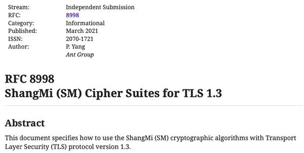 首個IETF國密標準正式發(fā)布,加速國密算法應用進程