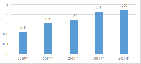 圖6 2016年至2020年我國農(nóng)村網(wǎng)絡(luò)零售額(萬億元)