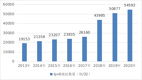 圖10 2013—2020年我國IPv6地址數(shù)量(塊/32)