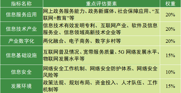 為更好地評估各地區(qū)信息化發(fā)展情況,國家網(wǎng)信辦組織有關(guān)單位,結(jié)合國家統(tǒng)計局、工業(yè)和信息化部、中央黨校(國家行政學院)、人力資源社會保障部、中國互聯(lián)網(wǎng)絡(luò)信息中心(CNNIC)等部門和機構(gòu)的統(tǒng)計數(shù)據(jù)和評價指數(shù),開展了2020年各地區(qū)信息化發(fā)展評估工作,重點評估了31個?。▍^(qū)、市)信息服務應用、信息技術(shù)產(chǎn)業(yè)、產(chǎn)業(yè)數(shù)字化、信息基礎(chǔ)設(shè)施、信息安全、發(fā)展環(huán)境等方面的發(fā)展水平,評價指標如表1所示。