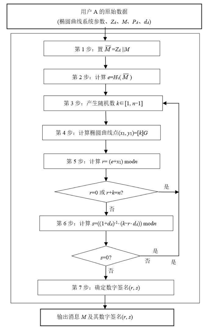 設待簽名的消息為,為了獲取消息M的數(shù)字簽名,簽名方A應實現(xiàn)以下運算步驟(圖8):