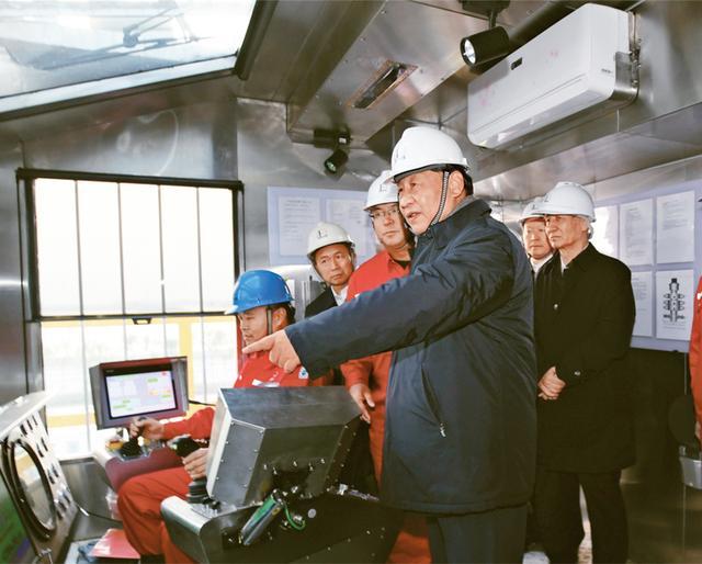 2021年10月22日下午,中共中央總書(shū)記、國(guó)家主席、中央軍委主席習(xí)近平在山東省濟(jì)南市主持召開(kāi)深入推動(dòng)黃河流域生態(tài)保護(hù)和高質(zhì)量發(fā)展座談會(huì)并發(fā)表重要講話。這是座談會(huì)前,習(xí)近平21日下午在位于東營(yíng)市萊州灣的勝利油田萊113區(qū)塊考察時(shí),登上二層鉆井平臺(tái),察看鉆井自動(dòng)化設(shè)備。 新華社記者 李學(xué)仁/攝