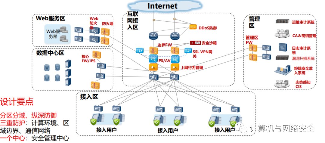 4.完備性原則:按照物理環(huán)境安全、通信網(wǎng)絡(luò)安全、網(wǎng)絡(luò)邊界安全、計算環(huán)境安全、應(yīng)用數(shù)據(jù)安全及密鑰管理和安全管理;