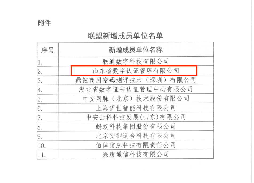 山東CA正式加入工信部商用密碼應(yīng)用產(chǎn)業(yè)促進(jìn)聯(lián)盟