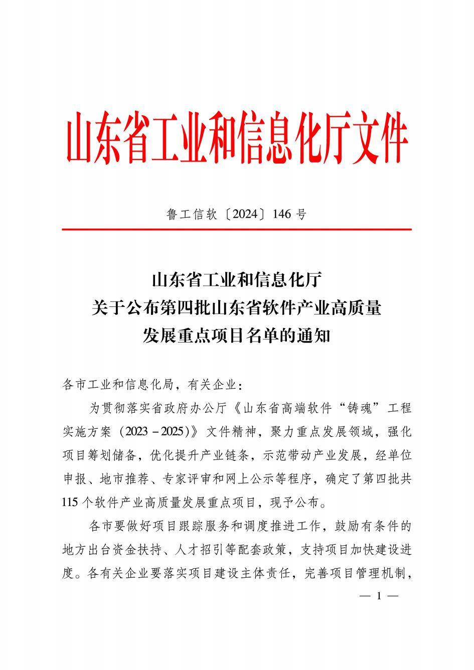 山東CA項目入選第四批山東省軟件產(chǎn)業(yè)高質(zhì)量發(fā)展重點項目